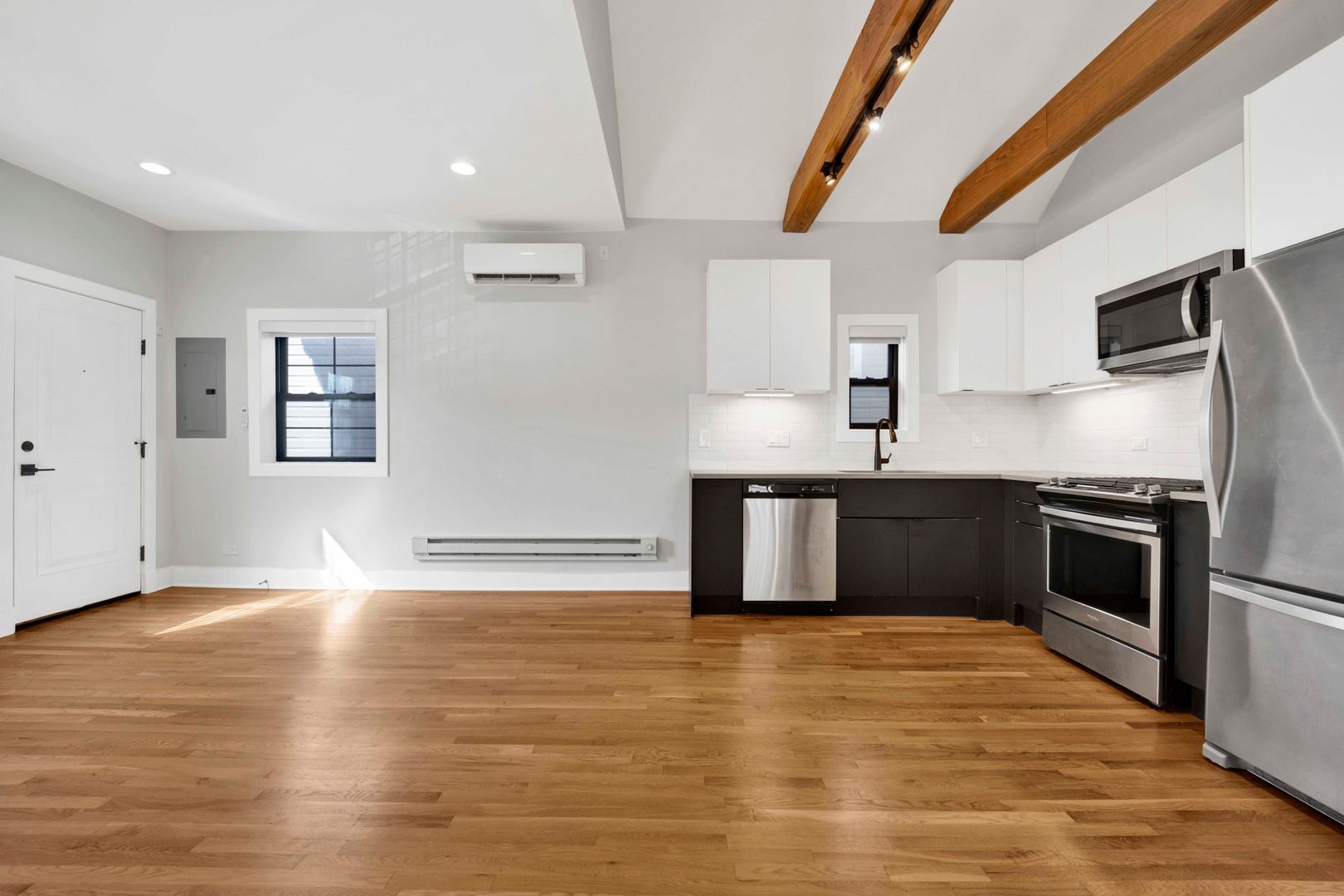 Welcome to this beautifully renovated top-floor 1 bed, 2 bath home in a boutique 2-unit building in the heart of Pilsen. This bright and airy residence features soaring ceilings with exposed beams, wide-plank hardwood floors, and oversized windows that bring in abundant natural light.